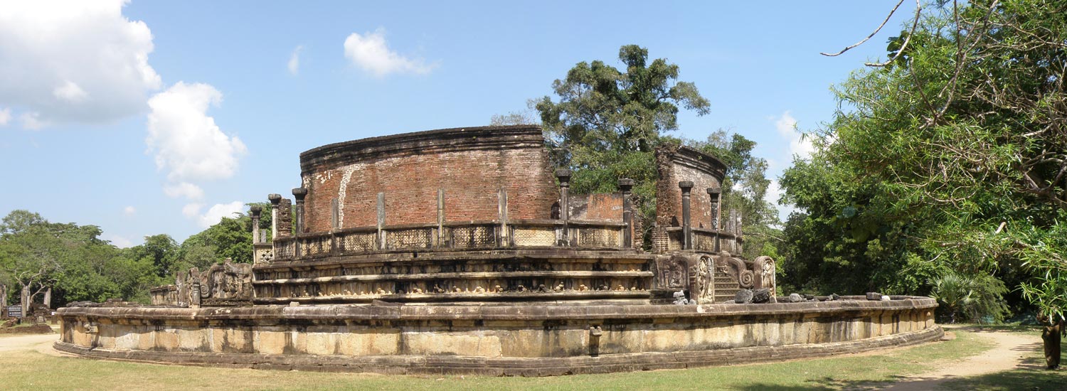 The largest in Polonanruwa and the fourth largest in Sri Lanka, Rankot Vihara Dagoba is 54m tall. It has been attributed to the reign of King Nissanka Malla, and the construction perfectly imitates the Anuradhapura Style. Like other major Dagobas, the dome has earth fill covered by a brick mantle and plaster.